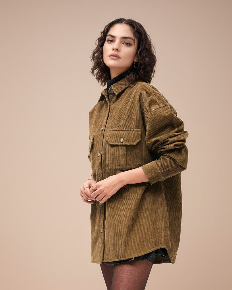 Brown Full Sleeve Double Pockets Corduroy Shirt