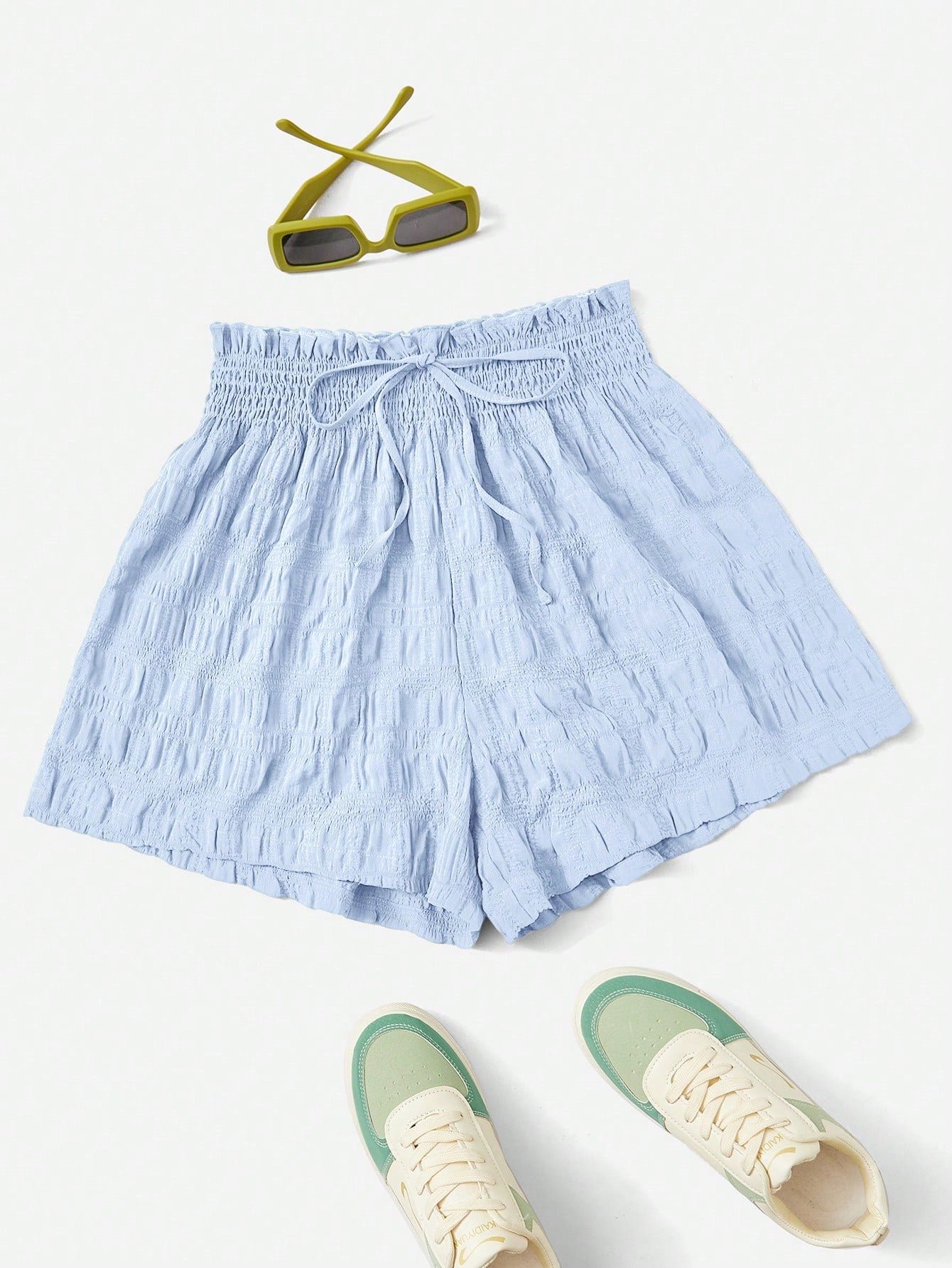 Light Blue Elasticated Drawstring Relaxed Fit Shorts