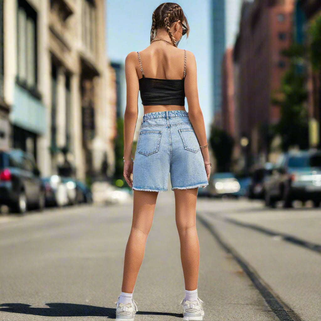 Light Blue Denim Shorts With Freyed Hem brings in just the right edge for when your night’s got no rules. Think street wear walks, group plans, or solo slay. These shorts are made for stepping out when the heat’s on. Get dressed, get out.
