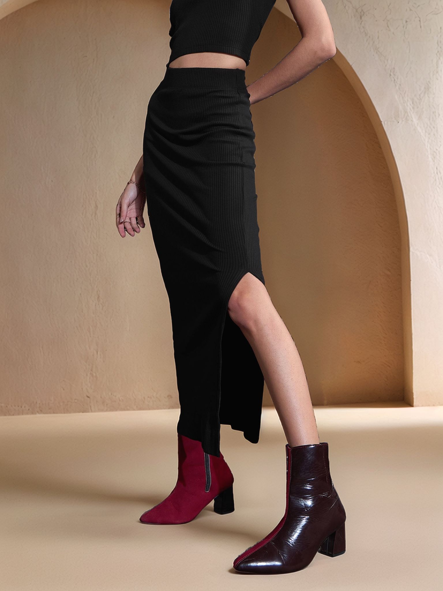 Black Fitted Knee Length Skirt is your new go-to for party wear plans. The kind of piece that looks like you tried, without even trying. Get dressed, get out.