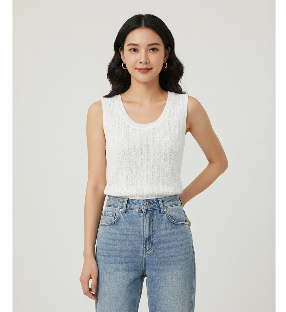 Meet the White Sleeveless Wrap Top,your answer to ‘what now?’ moments. With an easygoing knit and street wear versatility, it’s the kind of piece that levels up simple looks. Style it your way and go where the day takes you.