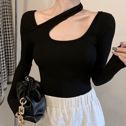 Black Left Cut-Out Fitted Top