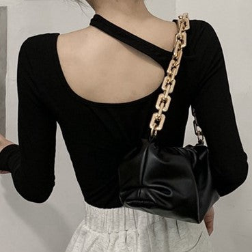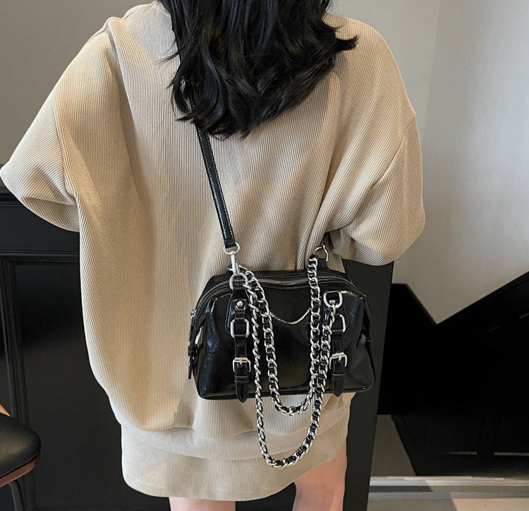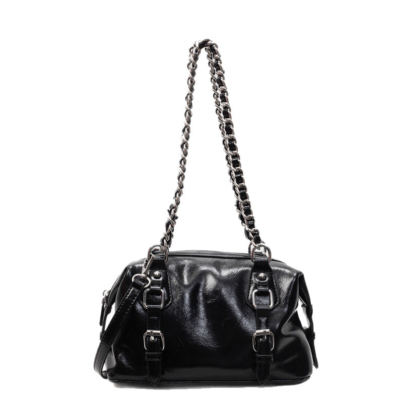 Black Buckle Charm Shoulder Bag