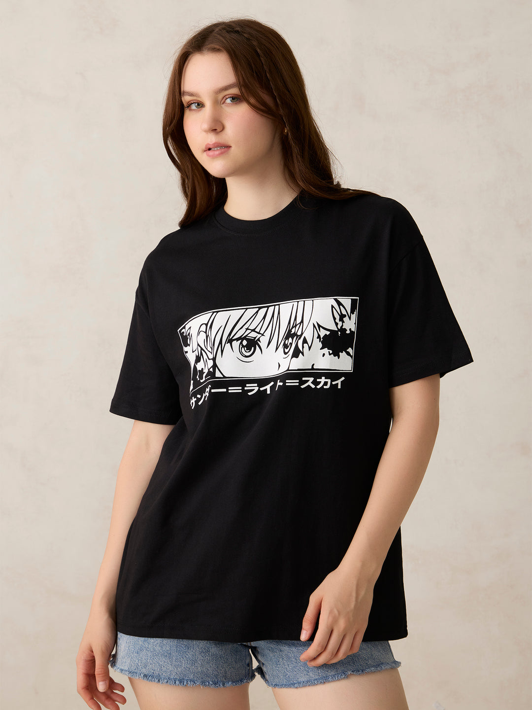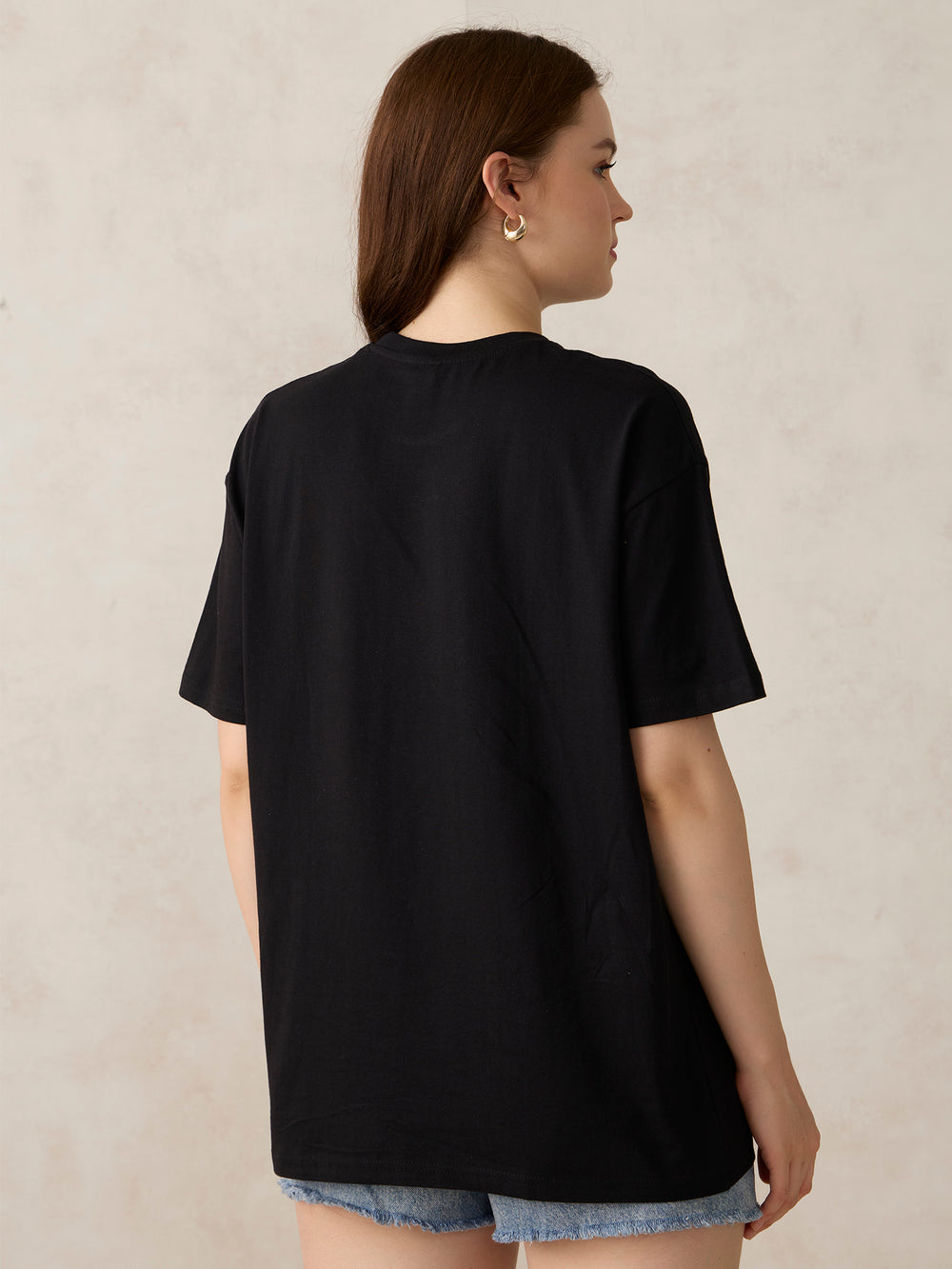 Heading out? The Black Graphic Oversized T-Shirt has your back. The black shade gives it a standout look, and its oversized silhouette makes it ideal for everything from casual hangs to chill parties. Pair with your go-to kicks and you're good to go.