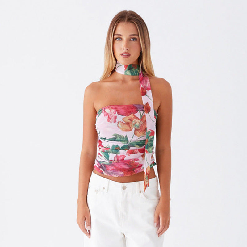 Multicolour Strapless Pleated Crop Top
