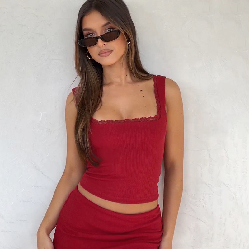 The Red Square Neck Top With Lace Inserts is built for the ‘out in five’ kind of energy. When street wear is on your agenda and chill is the brief, this top is ready to go. Get dressed, get out.