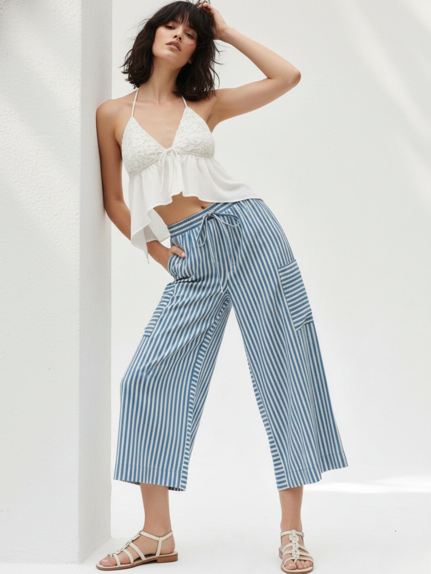 This white cropped flowy shirt offers a breezy and bohemian feel, making it a summer essential. The lightweight fabric and relaxed fit are perfect for beach days or casual picnics. A versatile white blouse that keeps you cool at summer festivals.