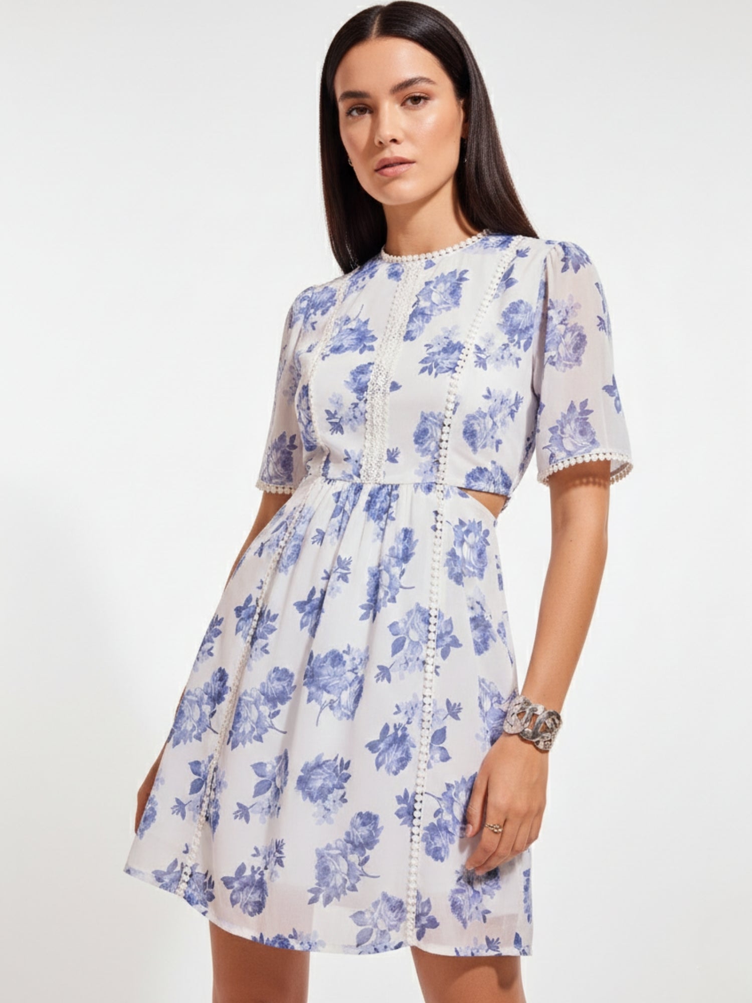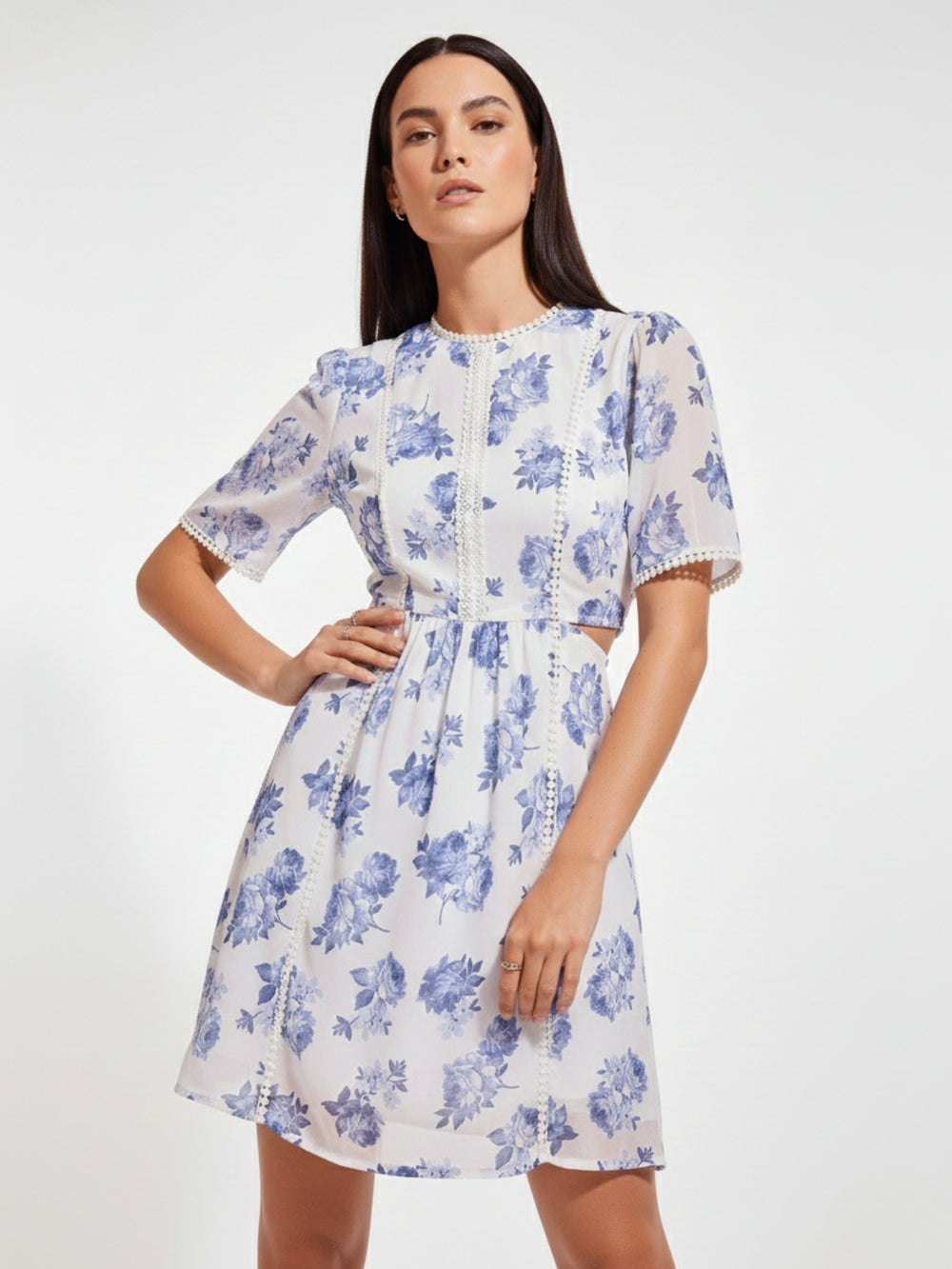 This white mini fit and flare dress with cut-out detail is the epitome of summer fashion. The breezy white dress silhouette makes it a perfect choice for an upscale brunch or a day at the beach. Pair it with strappy sandals and a sun hat for an effortless look at any summer party.