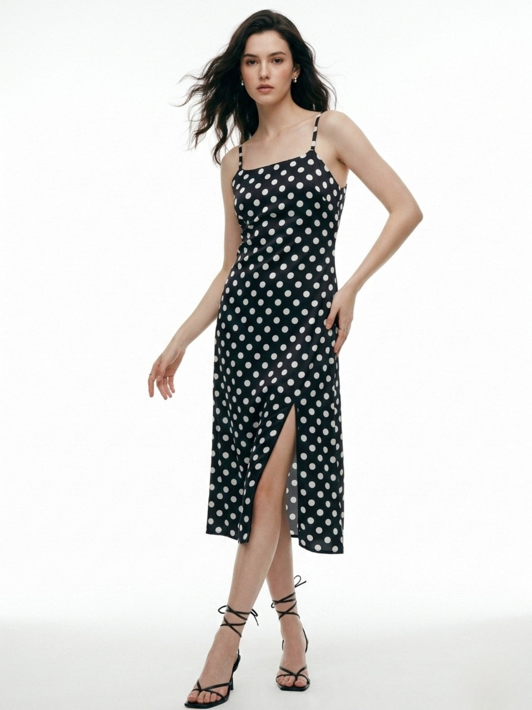 This black side slit satin dress is the epitome of timeless elegance. The sleek satin finish and flattering side slit make it a perfect choice for anniversary dinners or theater nights. Style it for formal events or romantic dinner dates for a refined and graceful appearance.