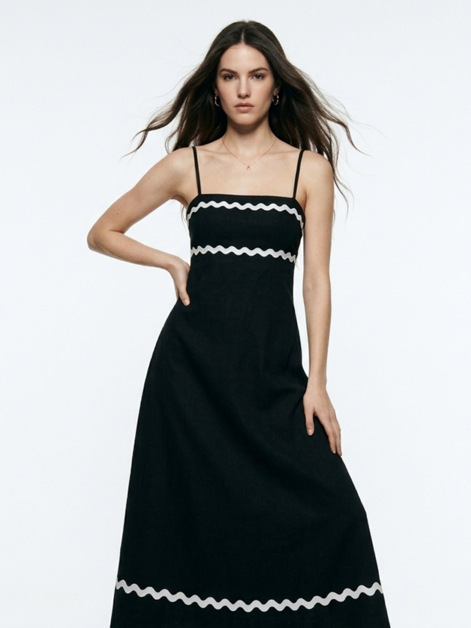 This black basic tiered dress is the definition of comfort and breezy style. The relaxed tiered design and midi length make it a go-to for garden parties or summer brunch. Pair with your favorite sandals for an effortless daytime look that captures modern grace during beach vacations or casual outings.