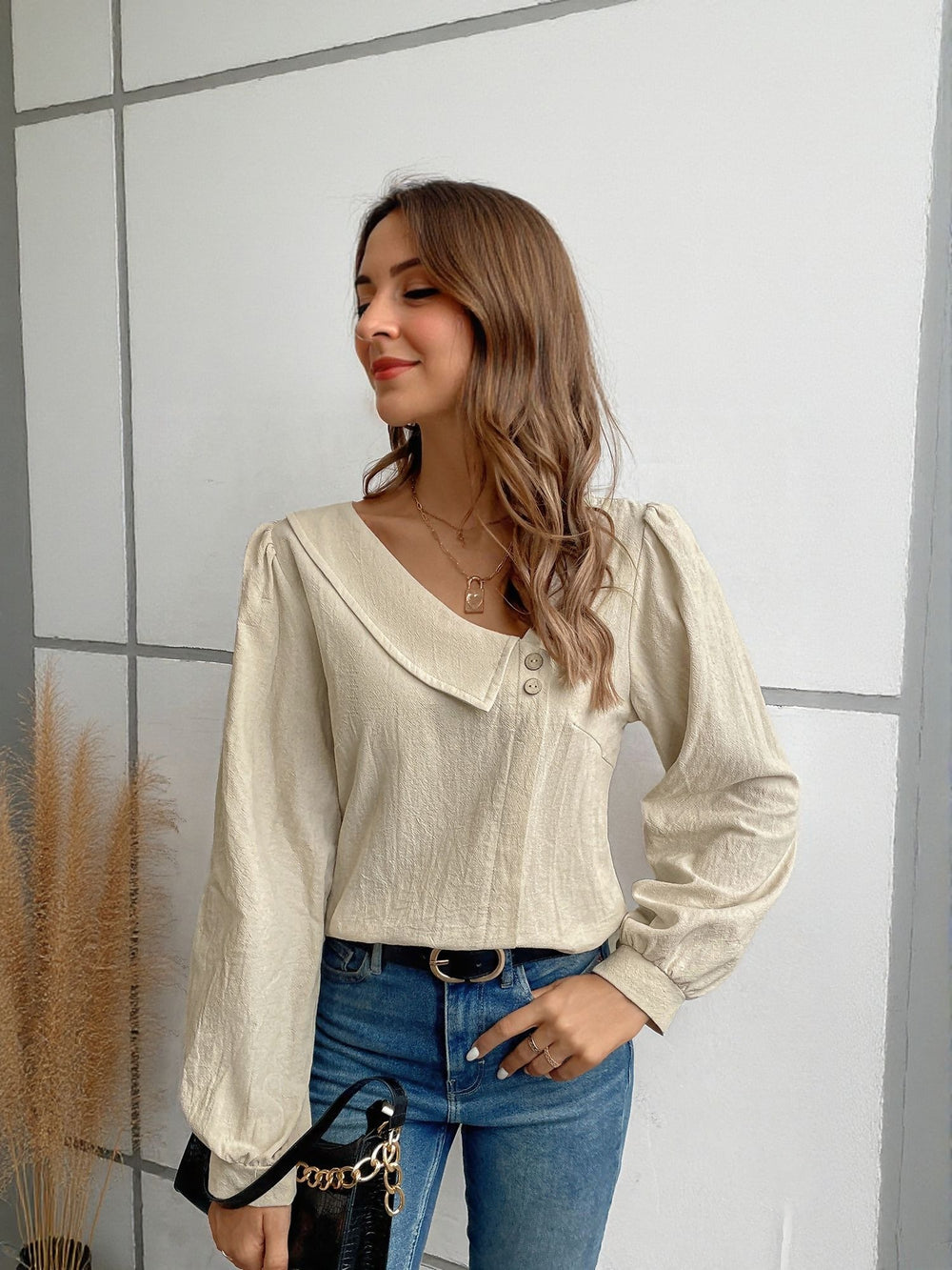 Cream Full Sleeve Buttoned Top