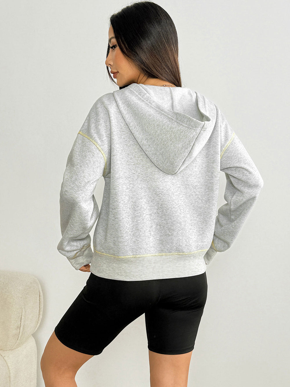 Grey Full sleeve front zip hooded jacket