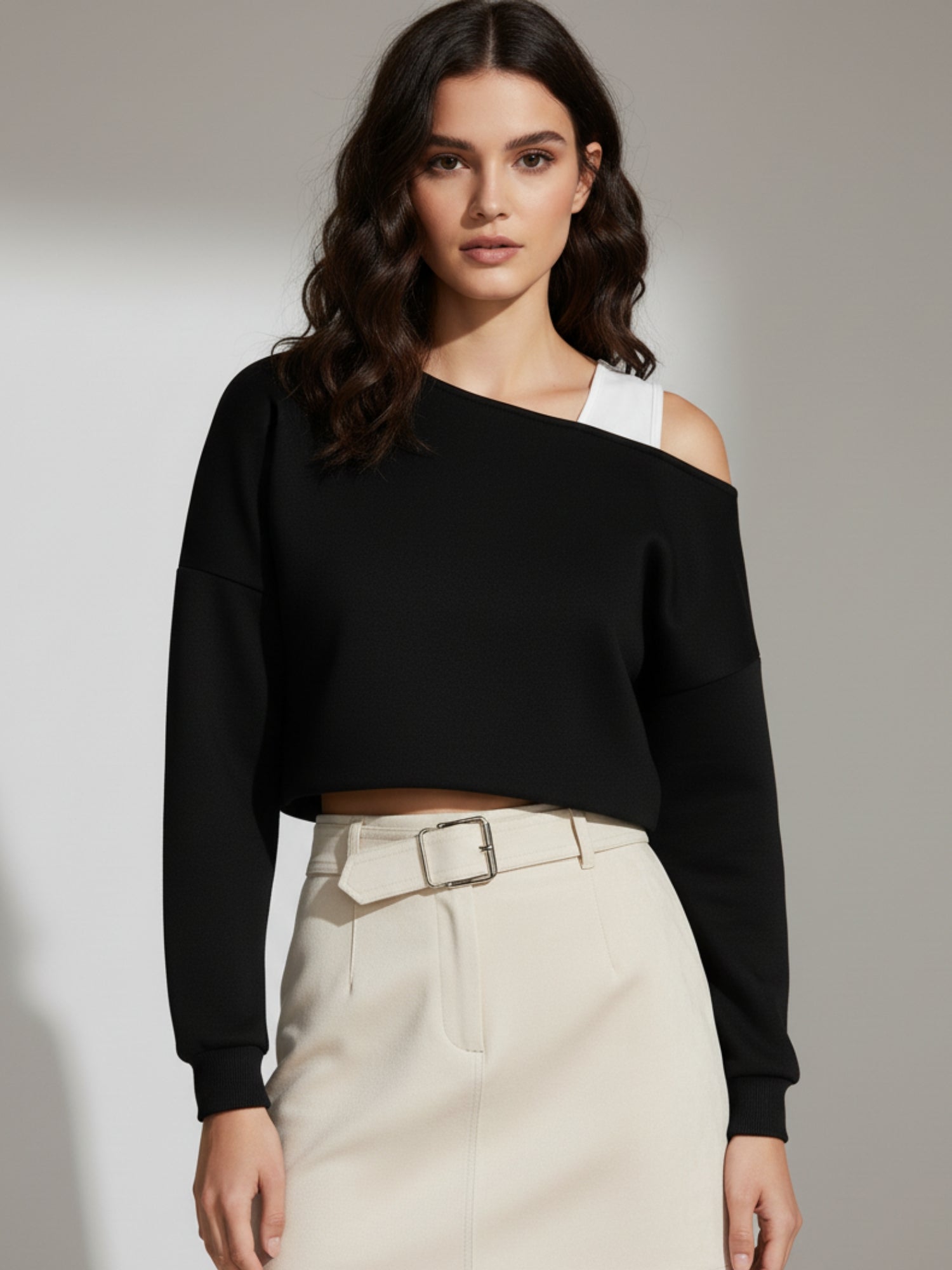 Black One shoulder crop sweatshirt