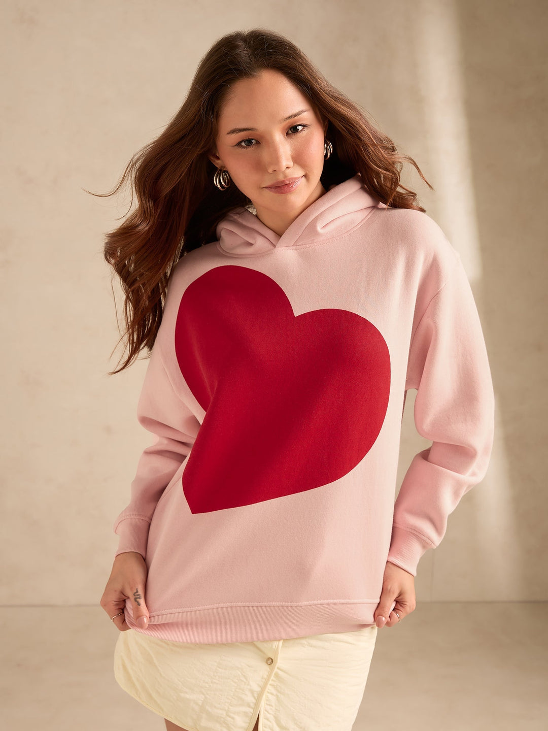 Pink Oversized Fleece Hoodie With Bold Heart Graphic