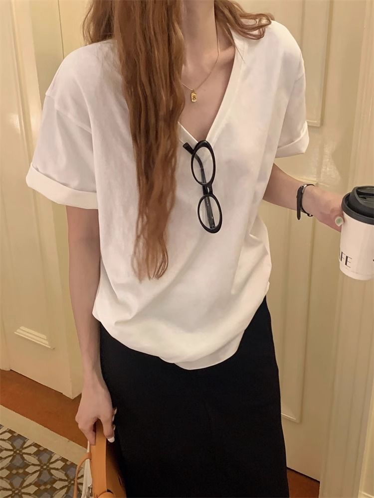 This off-white v-neck oversize t-shirt is the definition of comfort and minimalist style. The sophisticated off-white tone and relaxed fit make it a go-to for museum visits or a busy morning coffee run. Pair with neutral slacks and white sneakers for an effortless daytime look that captures modern grace and practical style for your daily adventures. This everyday white top ensures you look perfectly put-together while maintaining a relaxed, stylish presence during weekend travel.