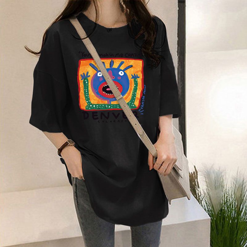 The Black Graphic Cropped T-Shirt isn’t just a casual wear, it's your fashion fallback. Black brightens up your closet, and the cropped cut means it pairs with almost everything.