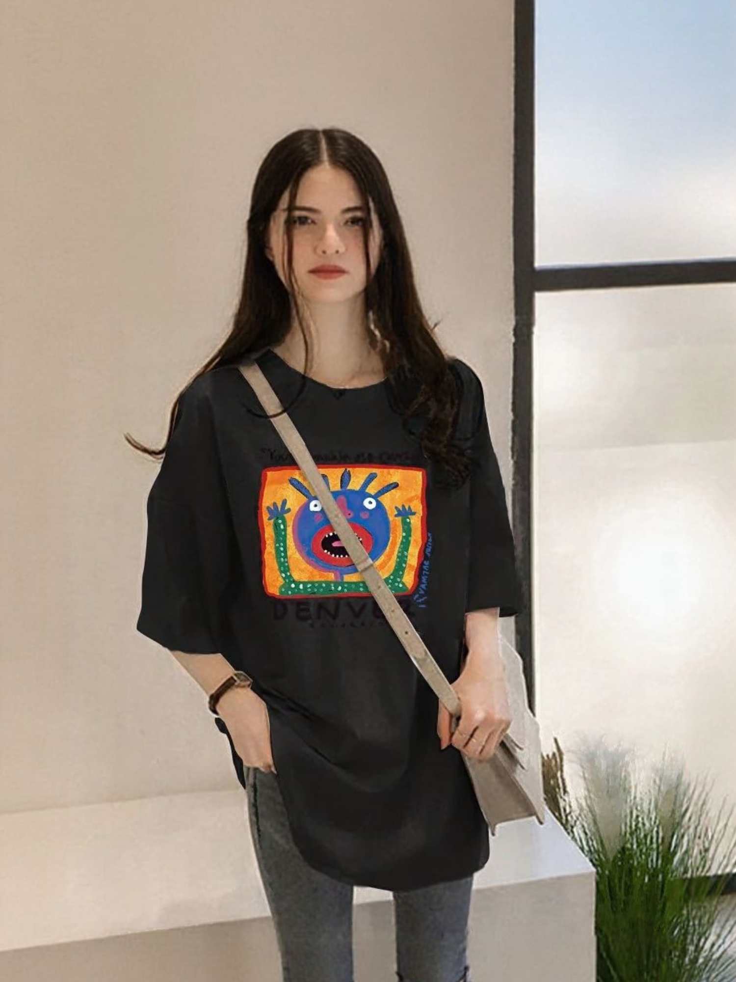 The Black Oversized Graphic T-Shirt is built for real plans and real movement. Bold in black, this casual wear transitions easily from daywear to after-dark fits. The oversized cut adds that edge you are after.