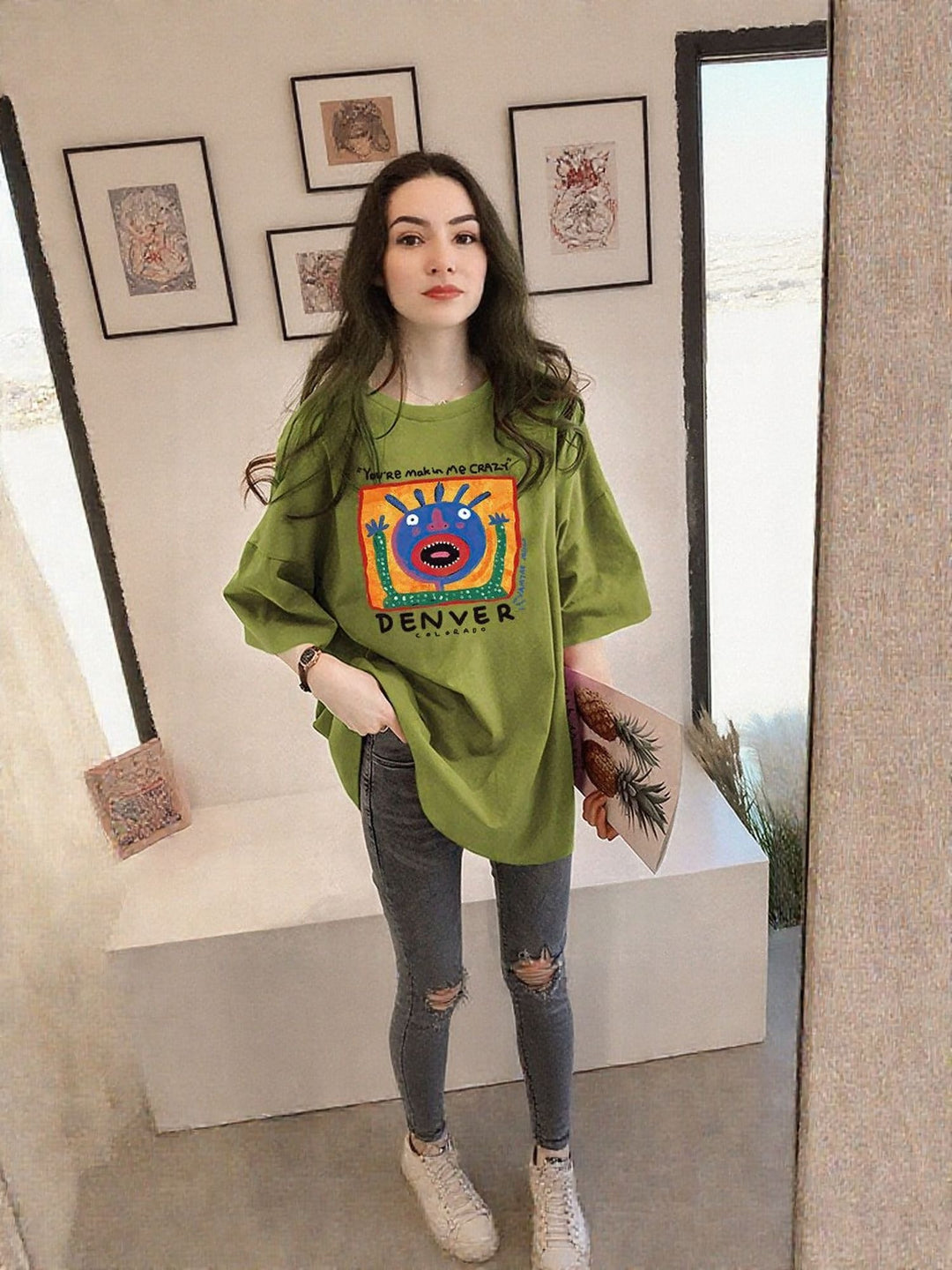 Heading out? The Olive Graphic Oversized T-Shirt has your back. and its oversized silhouette makes it ideal for everything from casual hangs to chill parties. Pair with your go-to kicks and you're good to go.
