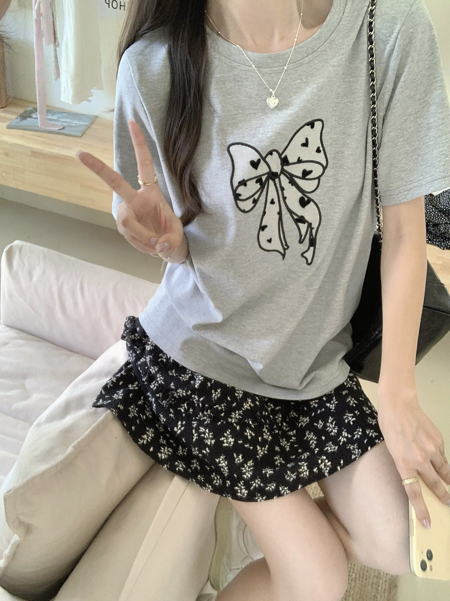 The Grey Bow Print Cap Sleeve Grpahic Tshirt is what your outfit plans have been waiting for. Finished in grey, this street wear plays well with both your everyday denim and late-night layers. Designed to be fuss-free and flattering.