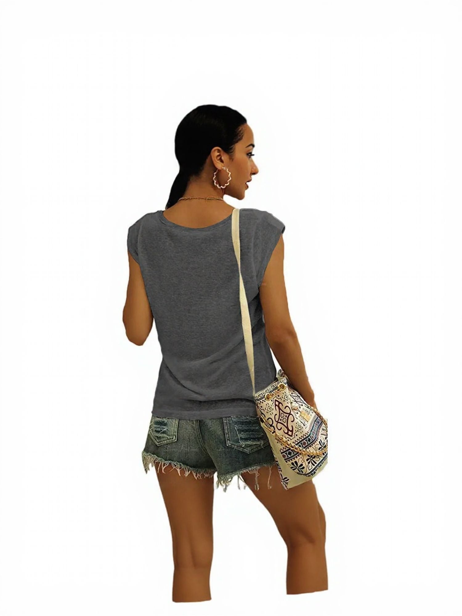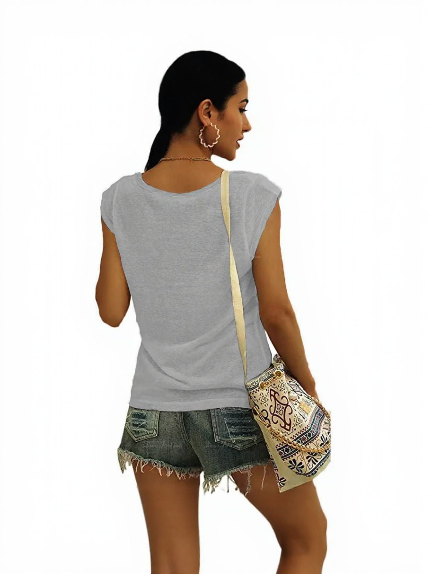 Looking for something that just works? The Grey V Neck Cap Sleeve Tshirt is the one. Grey shades bring the vibe, and the shape offers a clean shape for max mix-and-match potential.