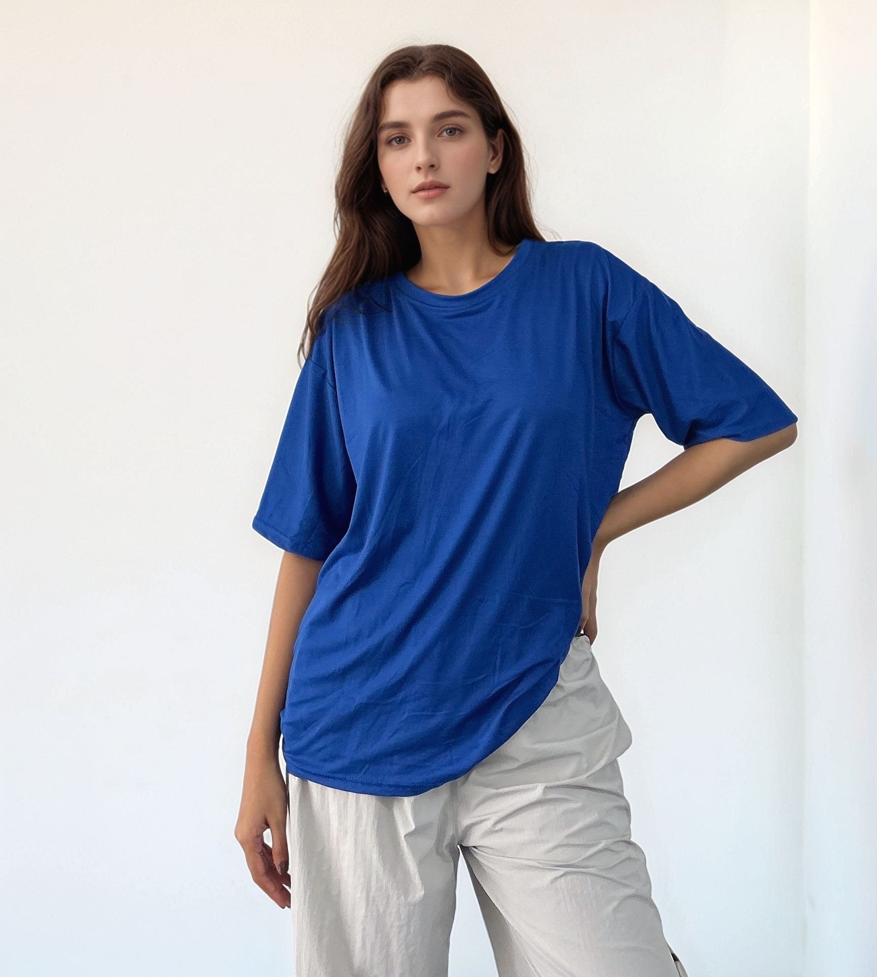 The Blue Basic Solid Over-Sized T-Shirt is what your outfit plans have been waiting for. Finished in blue, this street wear plays well with both your everyday denim and late-night layers. Designed to be fuss-free and flattering.