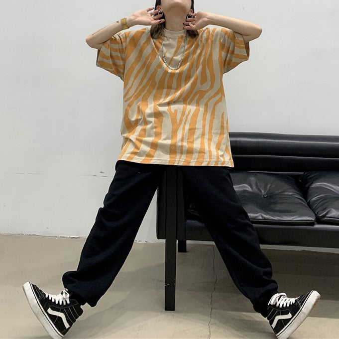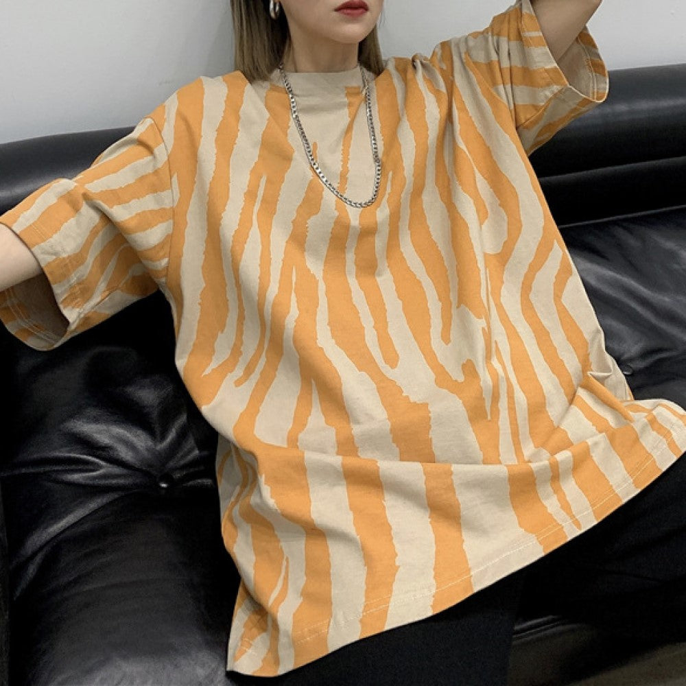 The Orange Animal Print Oversized T-Shirt is what your outfit plans have been waiting for. this street wear plays well with both your everyday denim and late-night layers. Its oversized fit keeps it flattering and functional.