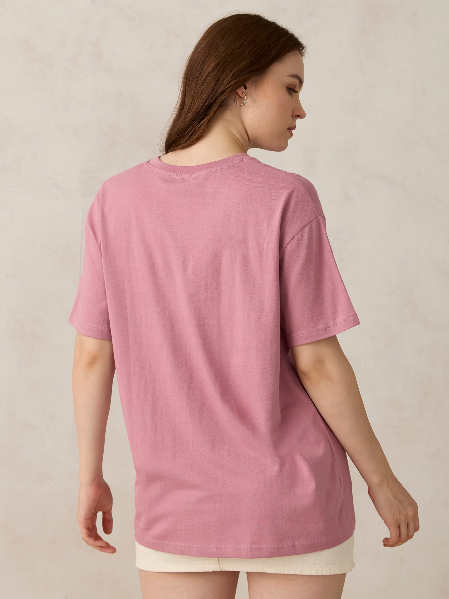 The Pink Graphic Oversized T-Shirt is what your outfit plans have been waiting for. Finished in pink, this street wear plays well with both your everyday denim and late-night layers. Its oversized fit keeps it flattering and functional.