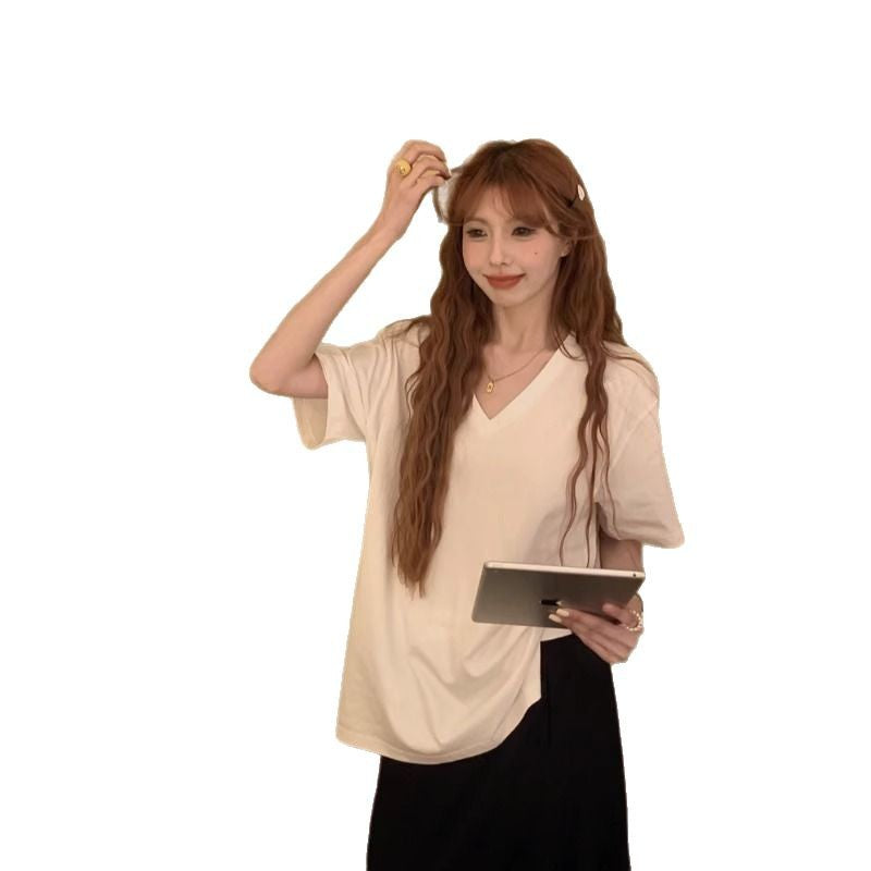 Heading out? The Off White V Neck Oversize Tshirt has your back. The white shade gives it a standout look, and its easy form makes it ideal for everything from casual hangs to chill parties. Pair with your go-to kicks and you're good to go.