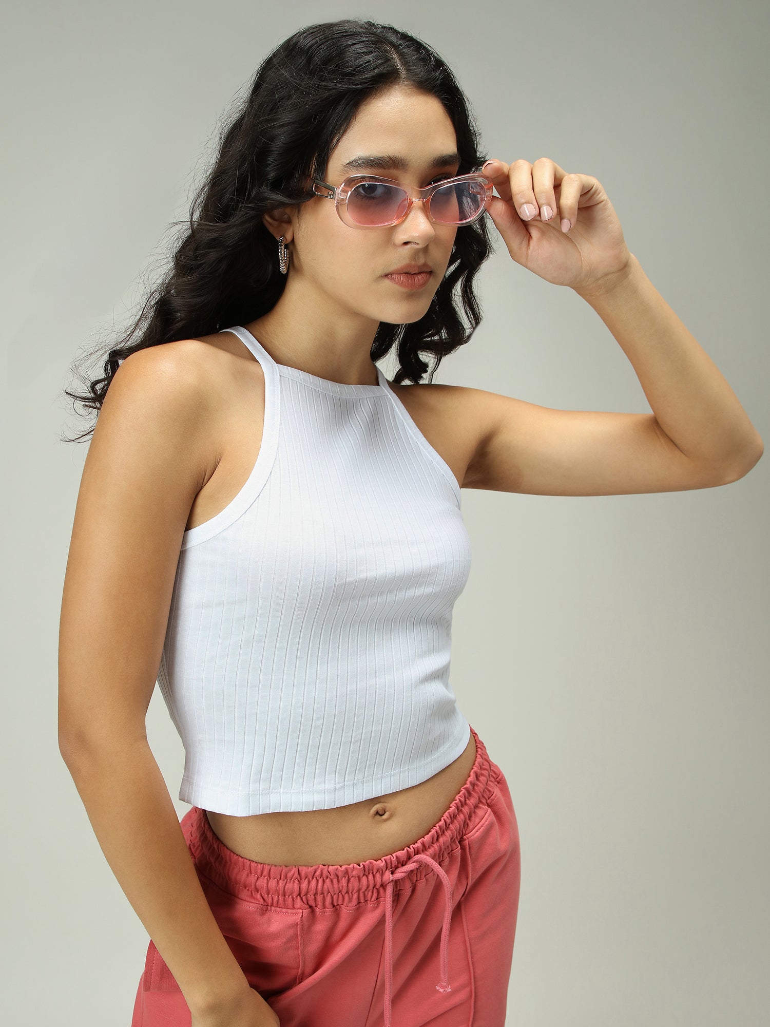 The White High Neck Thick Spaced Rib Top is built for real plans and real movement. Bold in white, this street wear transitions easily from daywear to after-dark fits. Finished with attention to ease and flow.