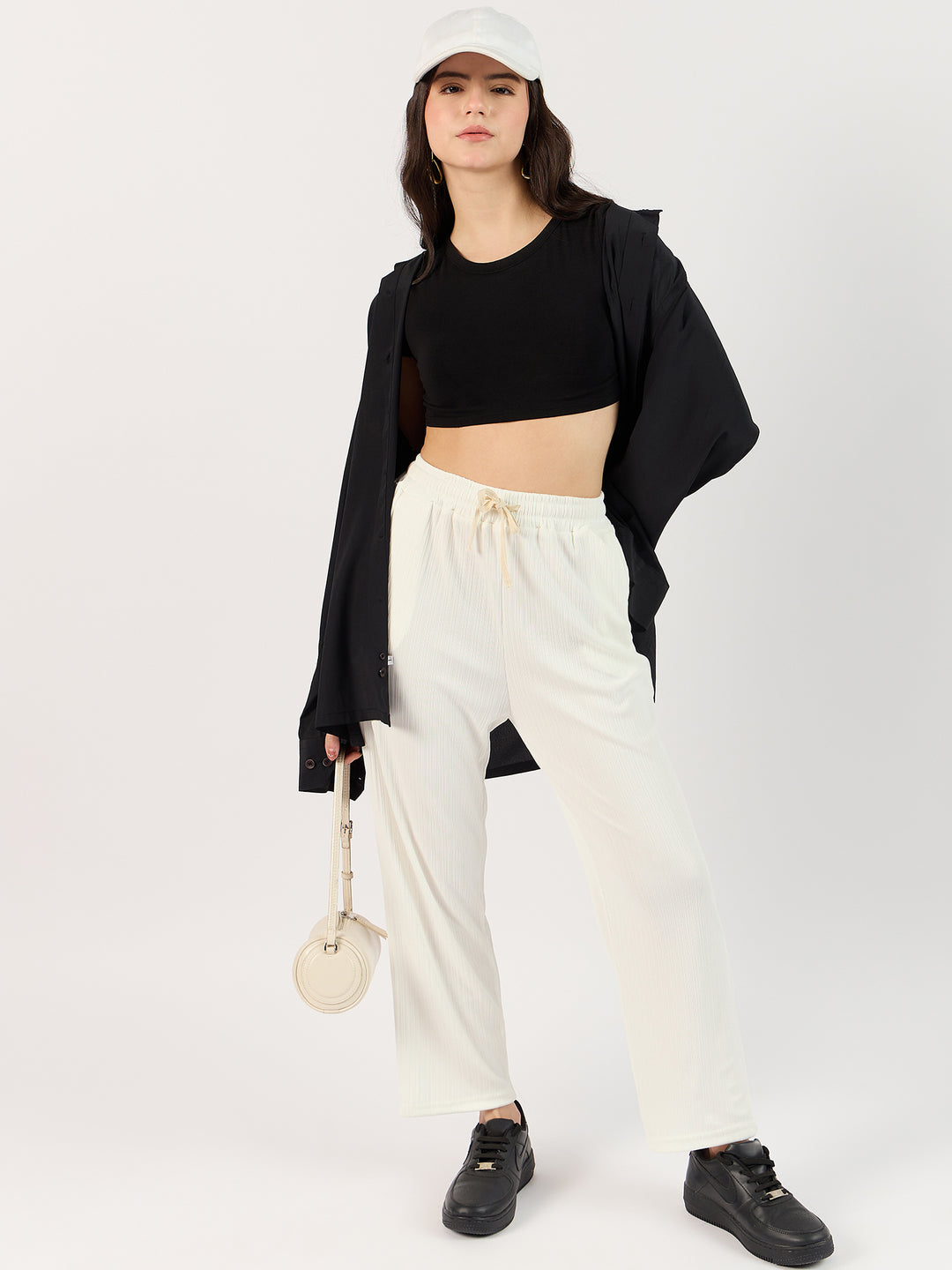 Black Textured Ribbed Trousers fits like it knows your plans. Whether it’s vacay wear chills or late drives, it gets it. Get dressed, get out.