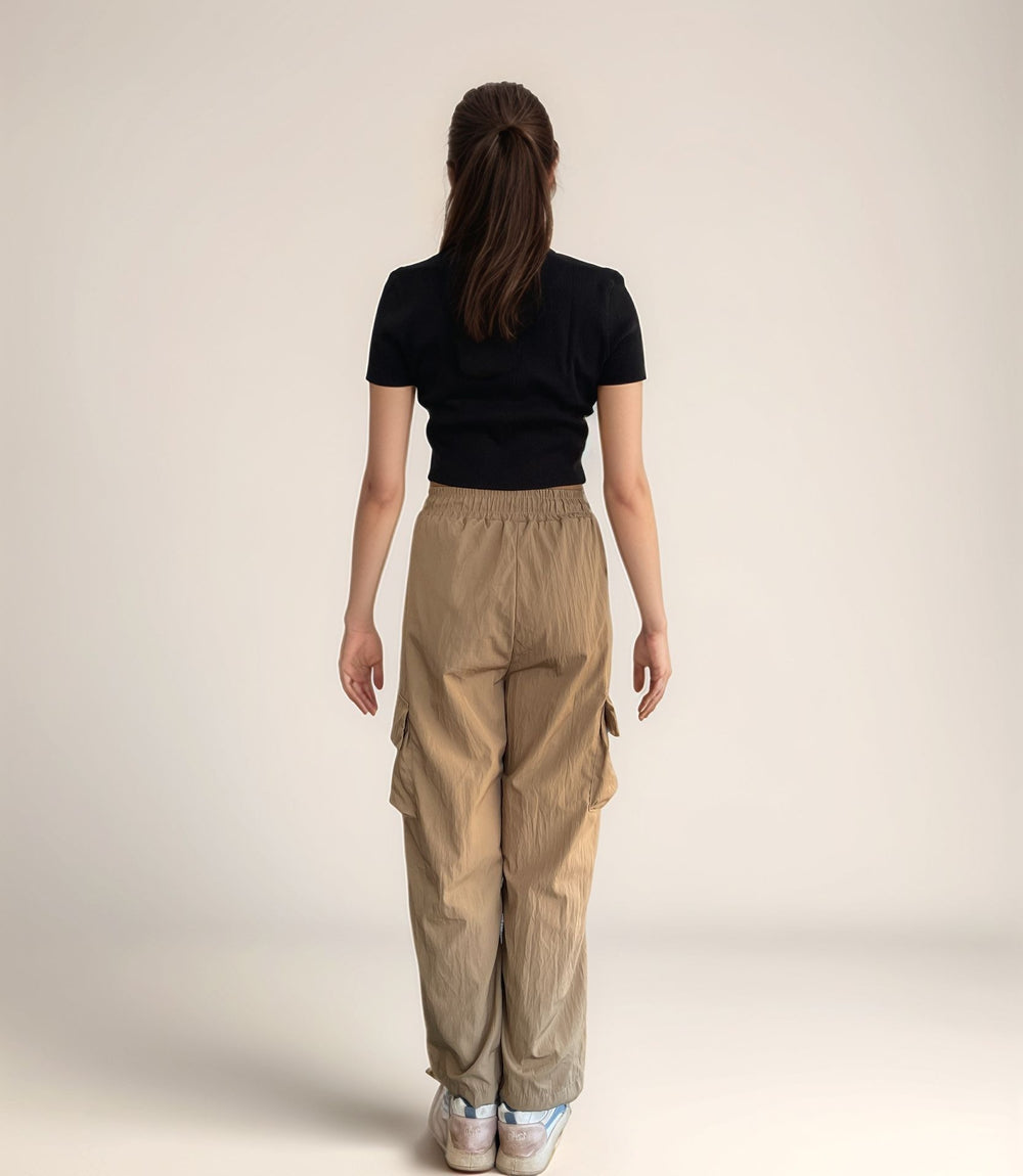 Pull on Khaki Elasticated Waistband Parachute Trousers when you want to look put-together and still feel laid-back. This one's built for street wear scenes. Get dressed, get out.