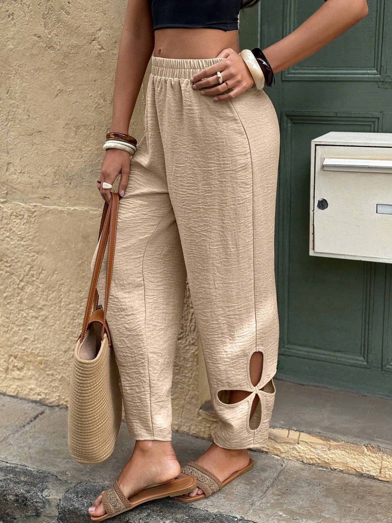 Beige Side Hem Cutout Pull Up Pants is your new go-to for street wear plans. The kind of piece that looks like you tried, without even trying. Get dressed, get out.