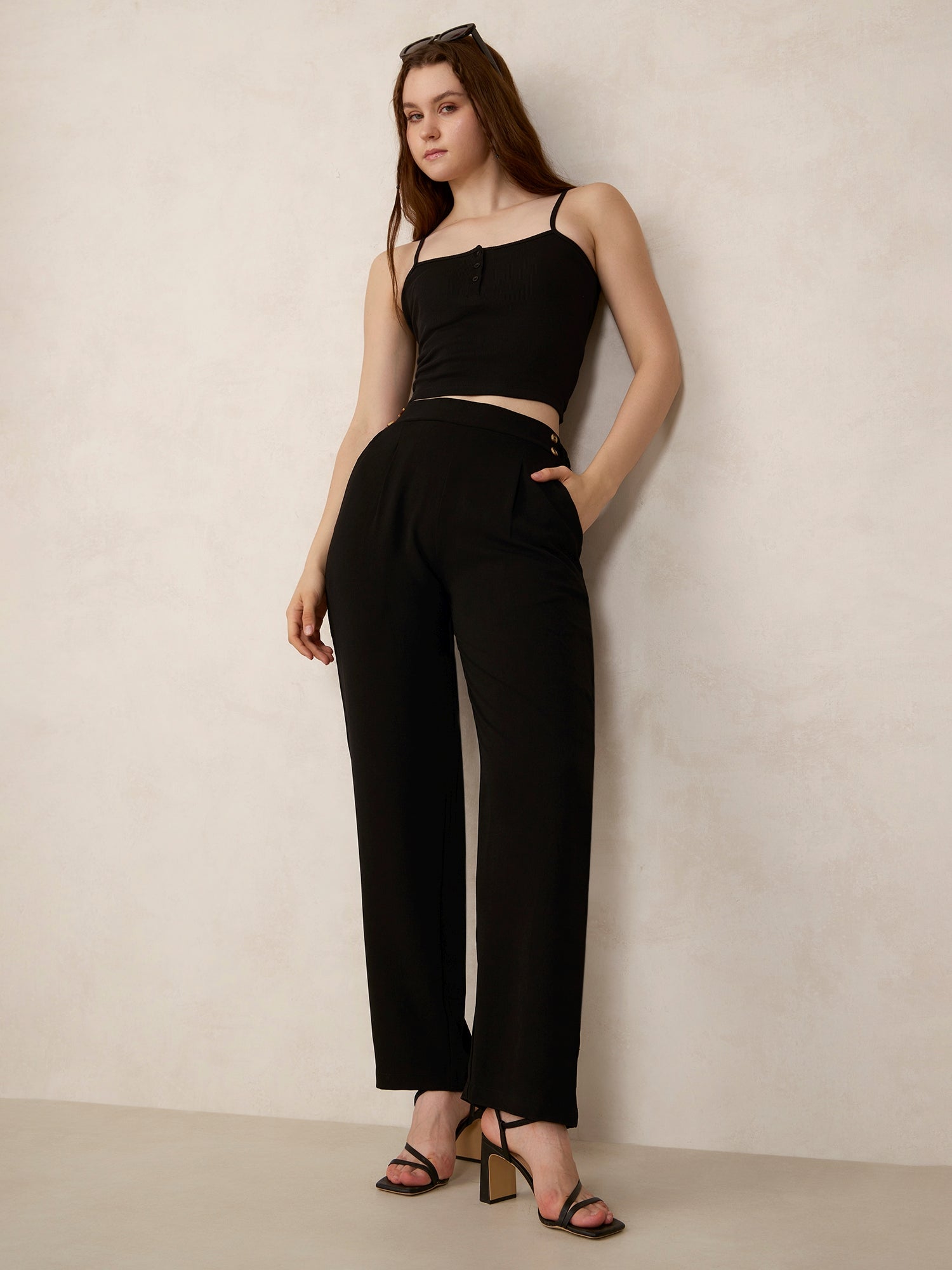 For the girl who’s always out , Black Extended Waist Band Straight Fit Trouser is made for your casual wear moves. Throw it on and step out. Get dressed, get out.