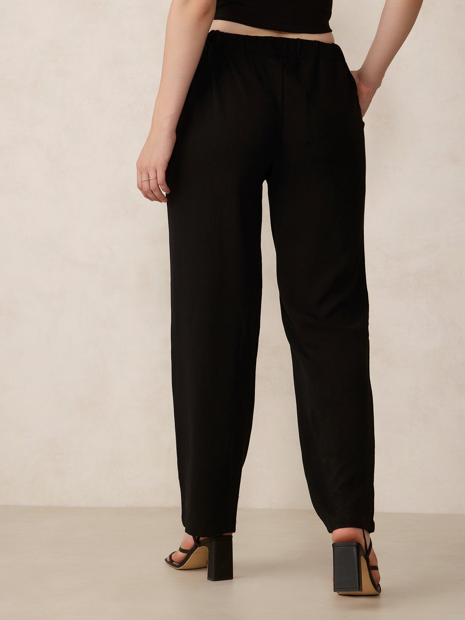 Black Baggy Fit Elasticated Pants