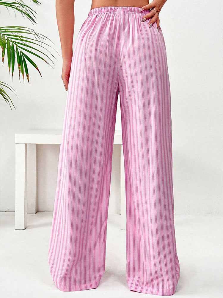 Pink Striped Wide Leg Drawstring Pant