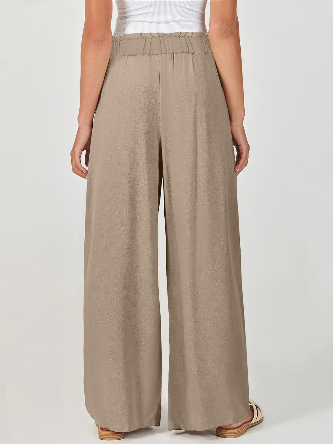 Khaki Elasticated Pleated Flared Pants