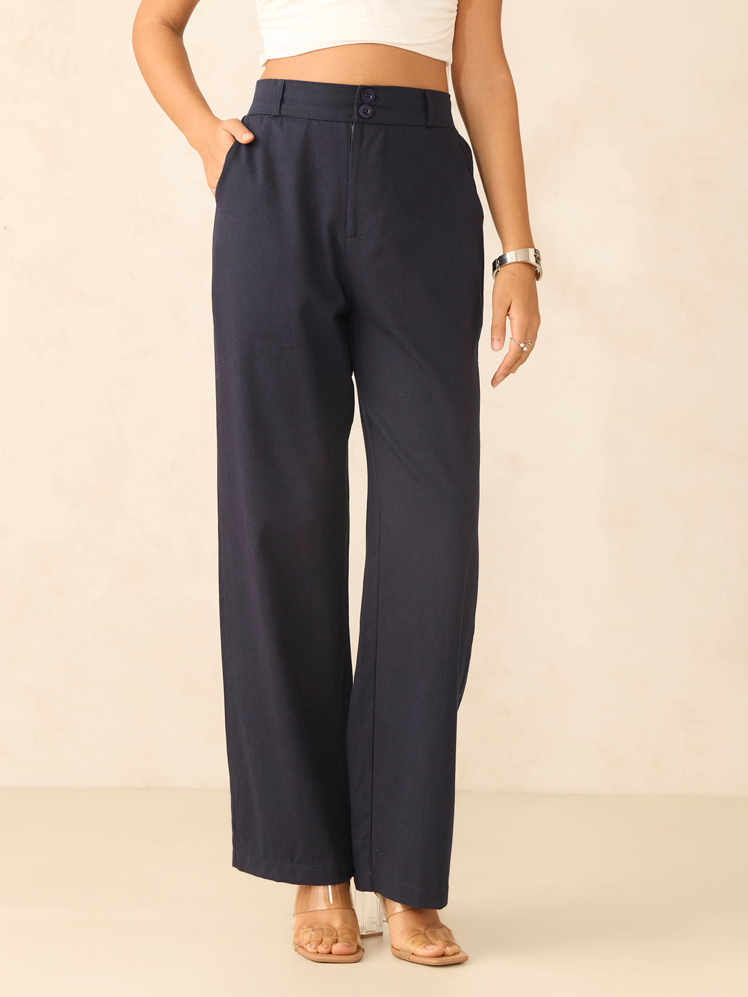Navy Blue Coord Set With Oversized Utility Shirt With Wide Leg Touser In Elevated Textured Fabric