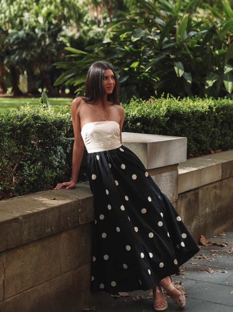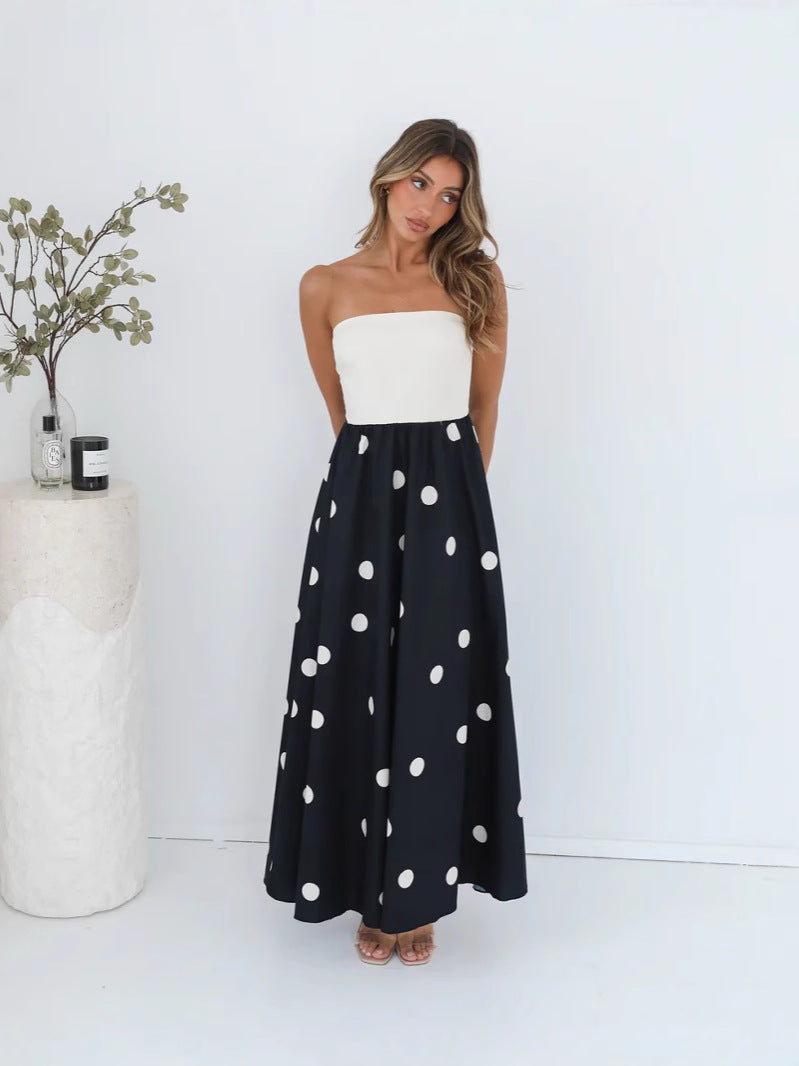 Black Strapless Polka Dot Dress