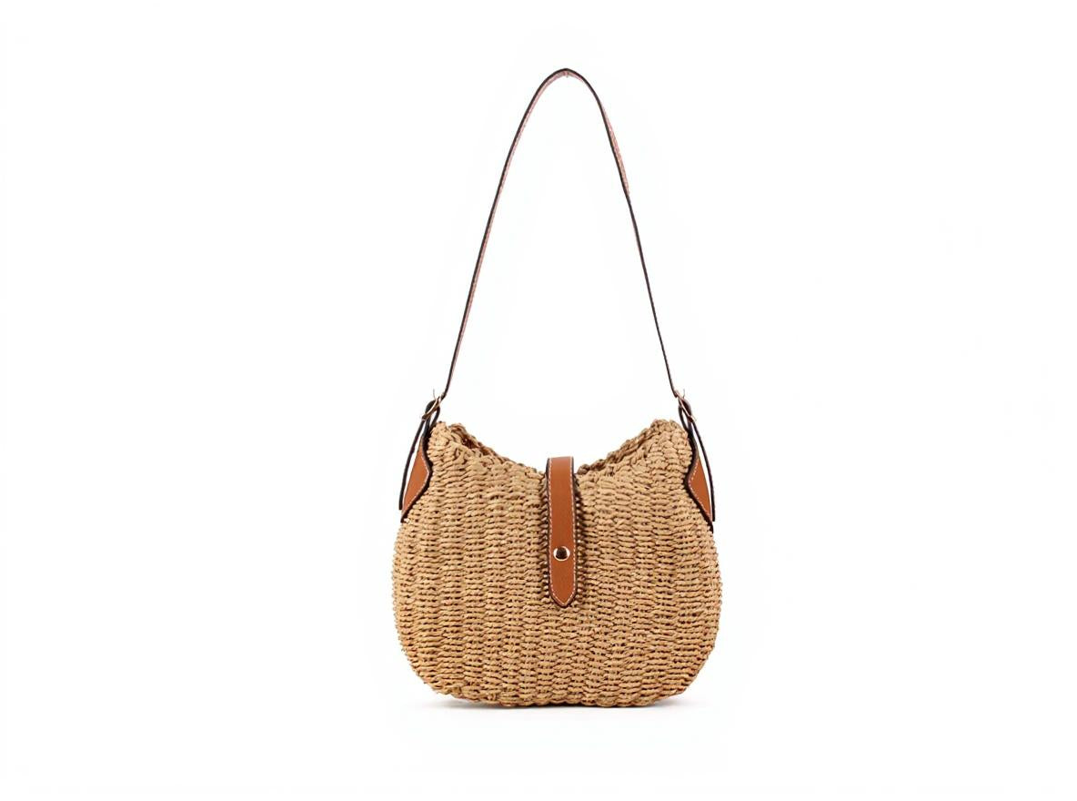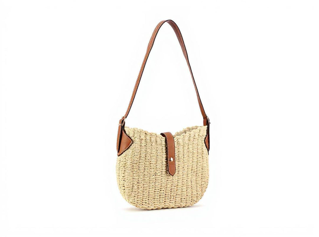 Beige Straw Beach Shoulder Bag