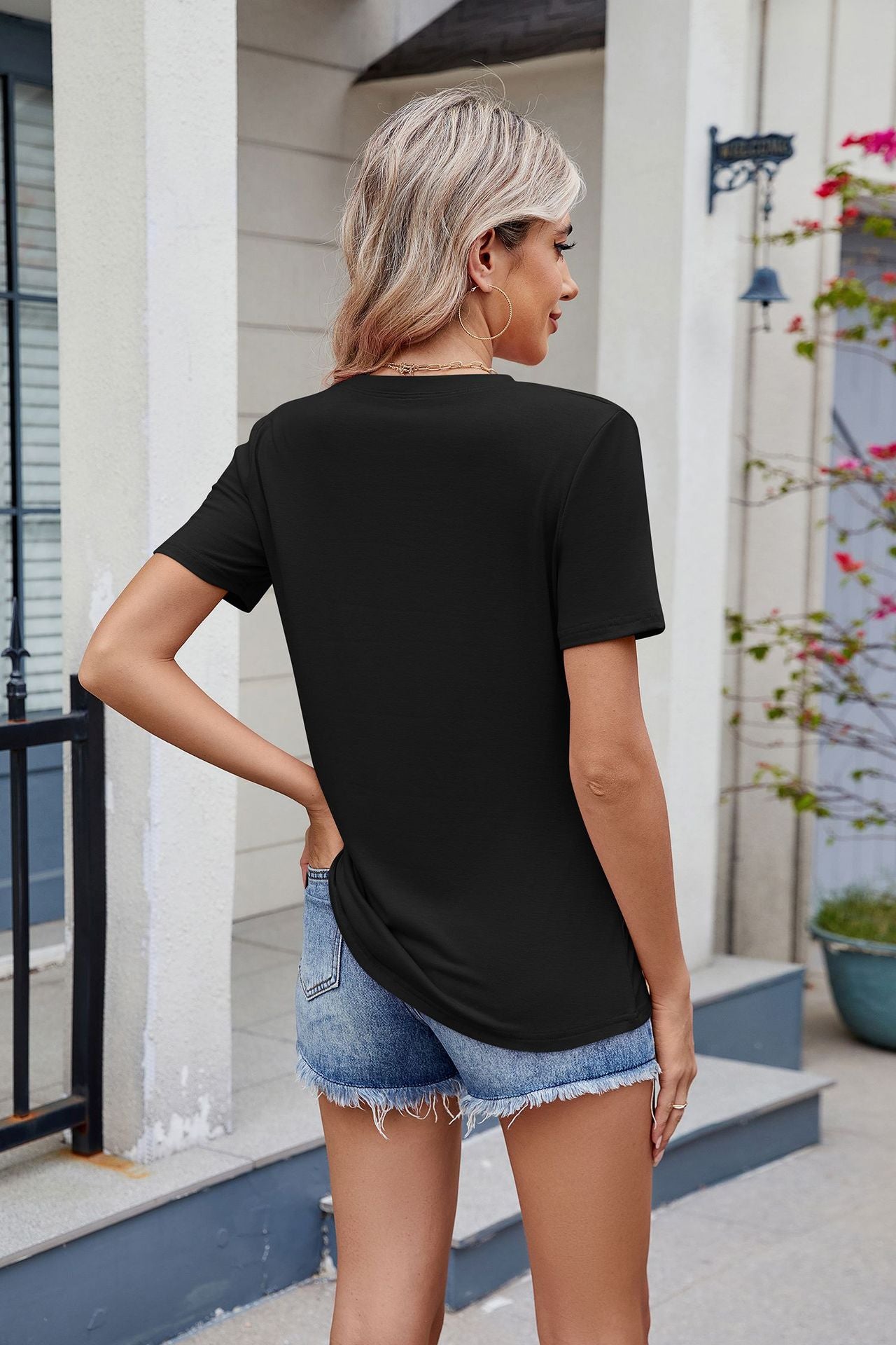 Fuchsia Short Sleeves Round Neck Side Ruched Top