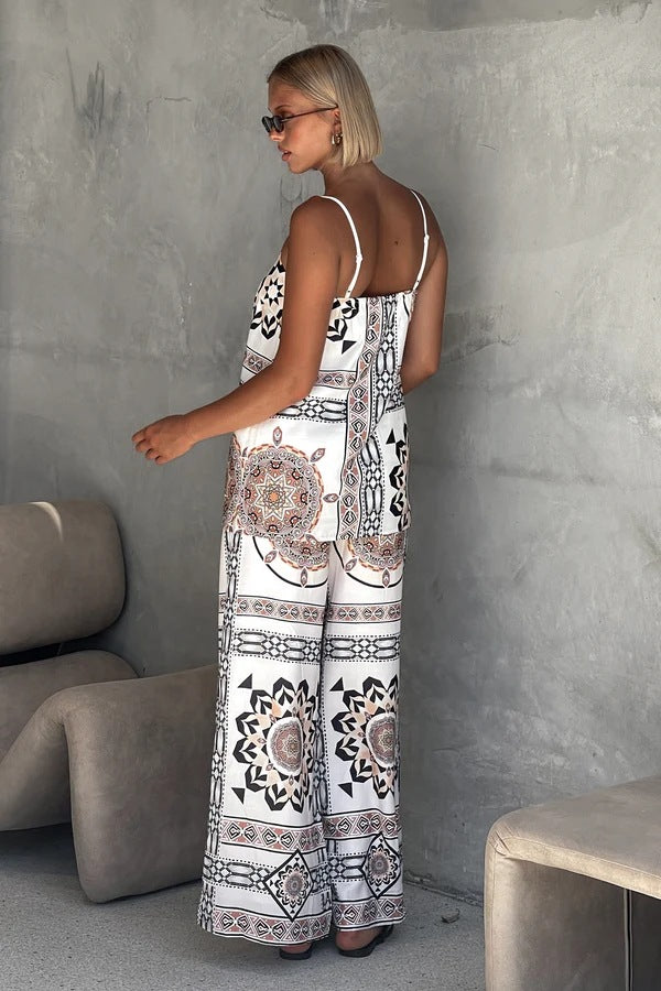 Blue Spaghetti Strap Abstract Printed Top & Pant Set