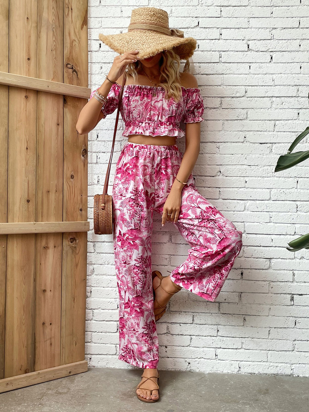 Pink Off Shoulder Top And Straight Fit Pant