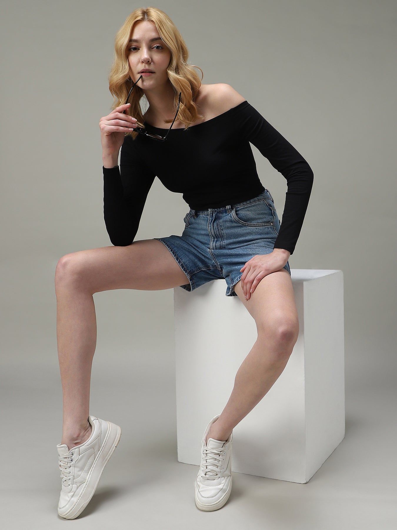 Meet the Black Off-Shoulder Fitted Top,your answer to ‘what now?’ moments. With an easygoing knit and street wear versatility, it’s the kind of piece that levels up simple looks. Style it your way and go where the day takes you.