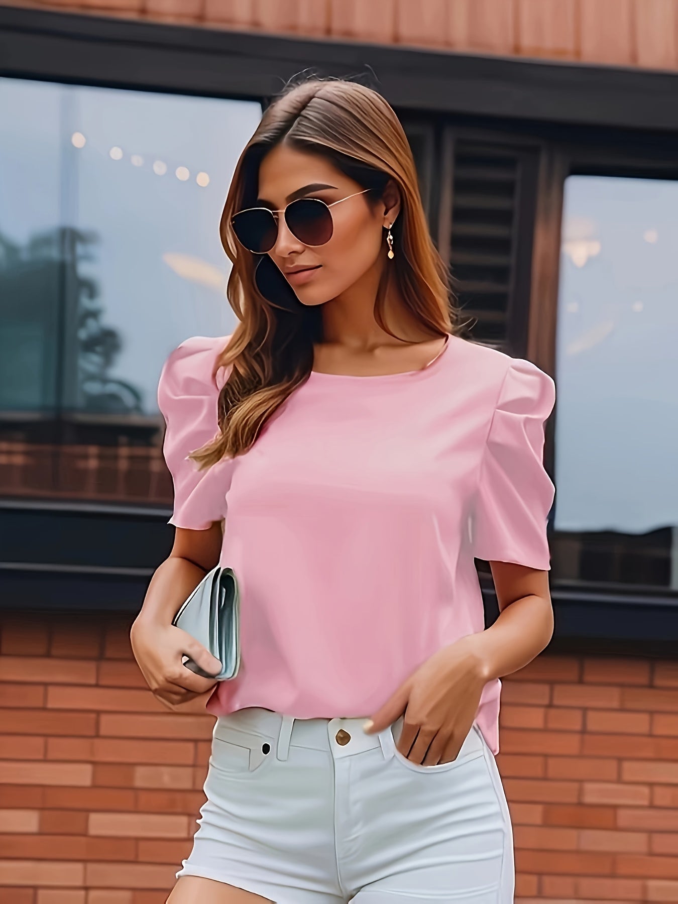 Call it your new fave, Pink Half Puff Sleeves Top is made for weekend runs, cafe crawls, and casual catch-ups. Pink tones give it a kick, while its regular fit is ideal for when you want something easy but elevated.