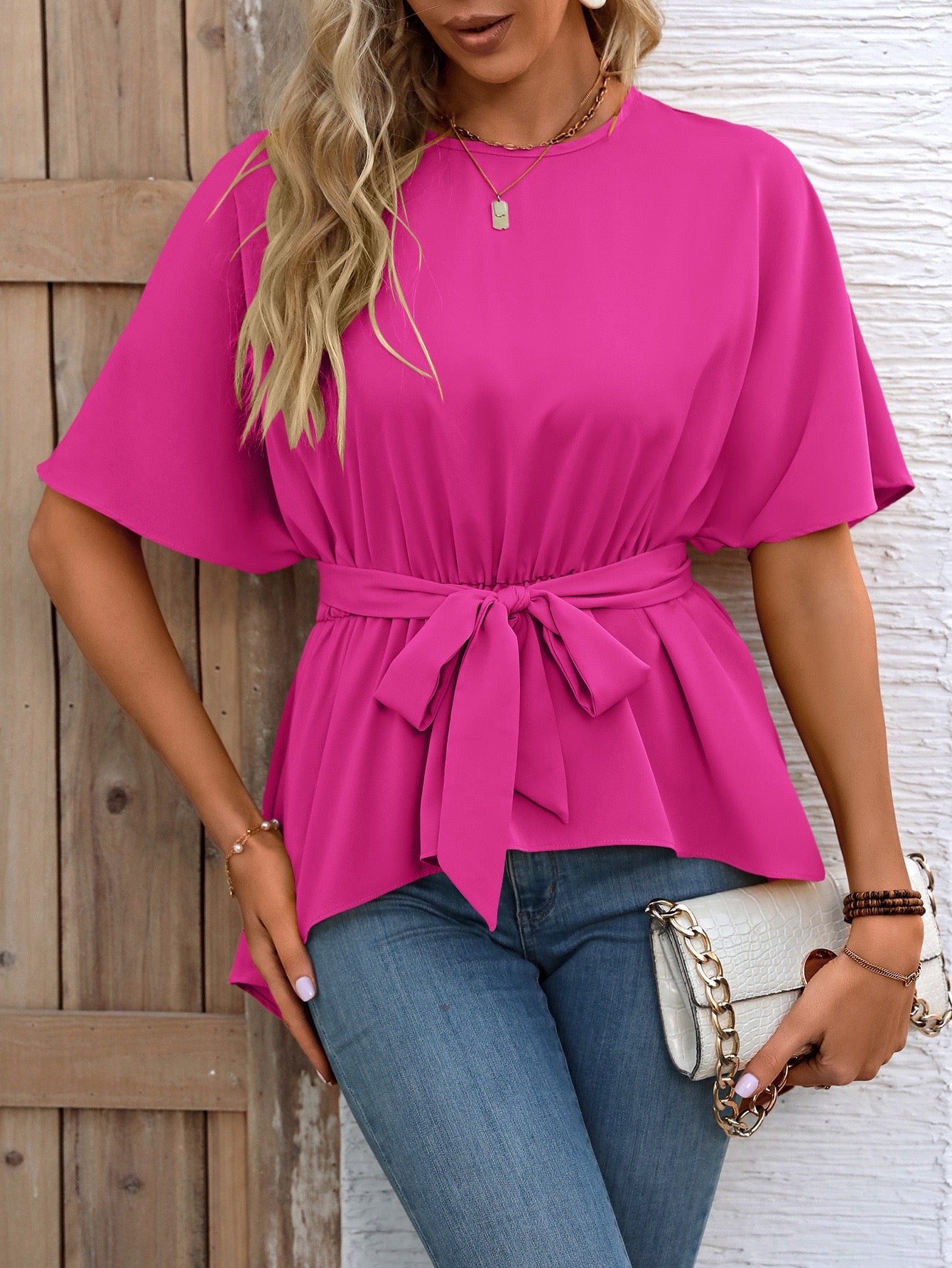 Own your outing in the Pink Waist Cinched Asymmetrical Hem Top. Pink gives it attitude, and the casual wear format keeps it real and wearable. From casual brunches to late-night chill, this is how Gen Z does going out.